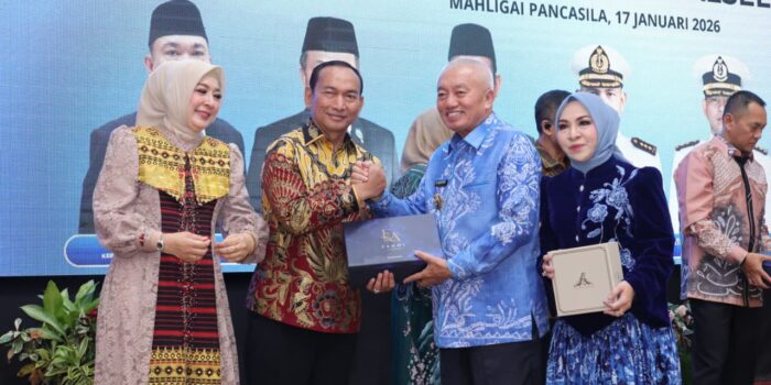 Banjarmasin – Gubernur Kalsel H Muhidin didampingi istri Ketua TP PKK Hj Fathul Jannah Muhidin dan Wakil Gubernur Hasnuryadi Sulaiman didampingi istri