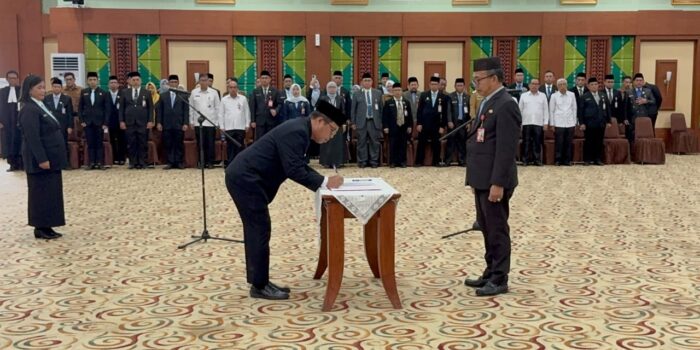 Banjarbaru – Gubernur Kalimantan Selatan, H Muhidin melalui Sekretaris Daerah Provinsi Kalimantan Selatan, M Syarifuddin, lantik 54 orang Kepala Sekolah SMA, SMK
