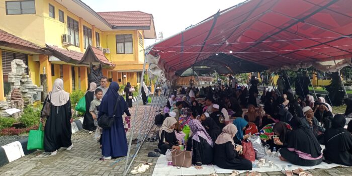 Beragam menu disediakan untuk para jamaah, mulai dari nasi ayam, ubi rebus, hingga makanan ringan lainnya. Antusiasme jamaah terlihat tinggi, bahkan sempat terjadi kepadatan saat pembagian jamuan makan berlangsung.