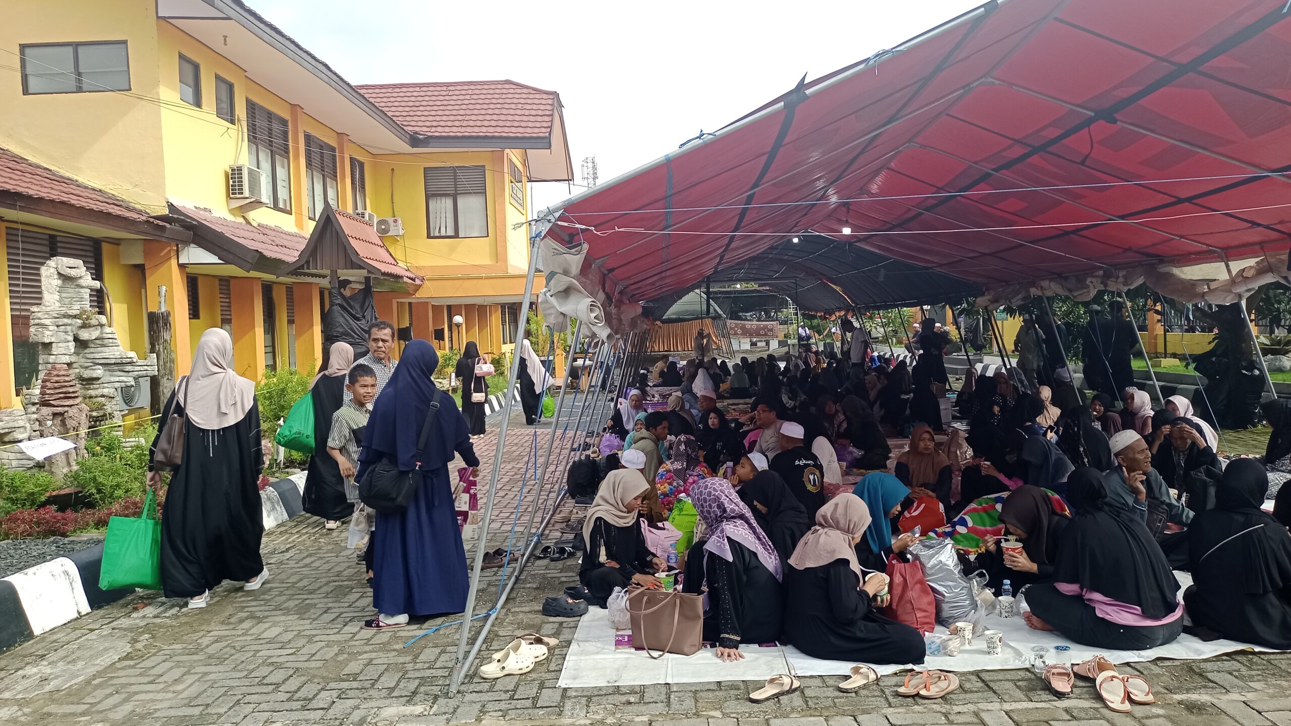 Beragam menu disediakan untuk para jamaah, mulai dari nasi ayam, ubi rebus, hingga makanan ringan lainnya. Antusiasme jamaah terlihat tinggi, bahkan sempat terjadi kepadatan saat pembagian jamuan makan berlangsung.