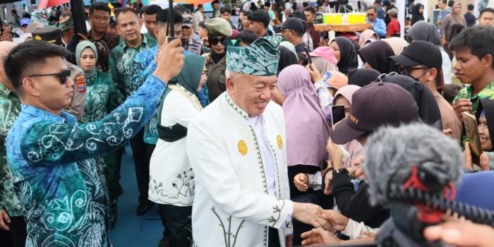 Marabahan – Gubernur Kalsel H Muhidin didampingi istri, Ketua TP PKK Kalsel Hj Fathul Jannah Muhidin, dan Wakil Gubernur Kalsel Hasnuryadi Sulaiman bersama istri Ketua BKOW drg Ellyana Trisya Hasnuryadi, turut menghadiri puncak peringatan hari jadi ke 66 Kabupaten Barito Kuala (Batola), Ahad (04/01/2026) di Stadion 5 Desember Marabahan.