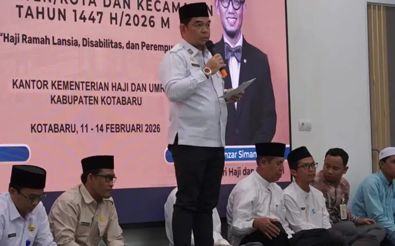 Pemerintah Kabupaten Kotabaru secara resmi membuka kegiatan Bimbingan Manasik Haji Terintegrasi Tingkat Kabupaten dan Kecamatan bagi Jemaah Haji Reguler Tahun 1447 Hijriah/2026 Masehi, Rabu (11/2/2026) pagi, bertempat di Masjid Apung Siring Laut Kotabaru.
