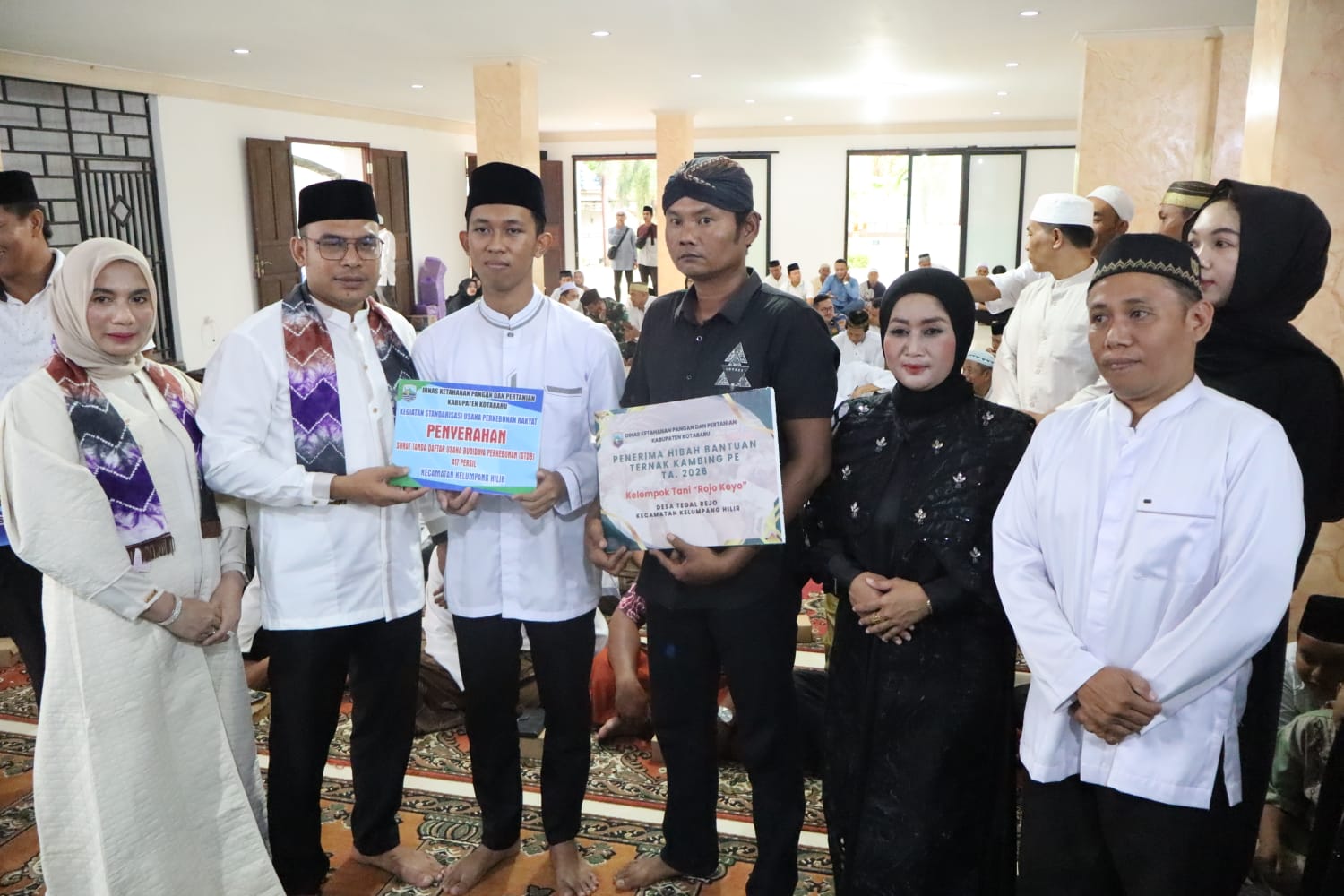 Dalam kesempatan tersebut, Pemerintah Kabupaten Kotabaru turut menyerahkan sejumlah bantuan secara simbolis kepada masyarakat. Bantuan tersebut meliputi insentif bagi guru Taman Pendidikan Al-Qur’an (TPA), bantuan sosial bagi penyandang disabilitas, bantuan makanan tambahan bagi ibu hamil, remaja putri dan balita, bantuan alat tangkap nelayan, bantuan ternak kambing bagi kelompok tani, serta bantuan program bedah rumah tidak layak huni.